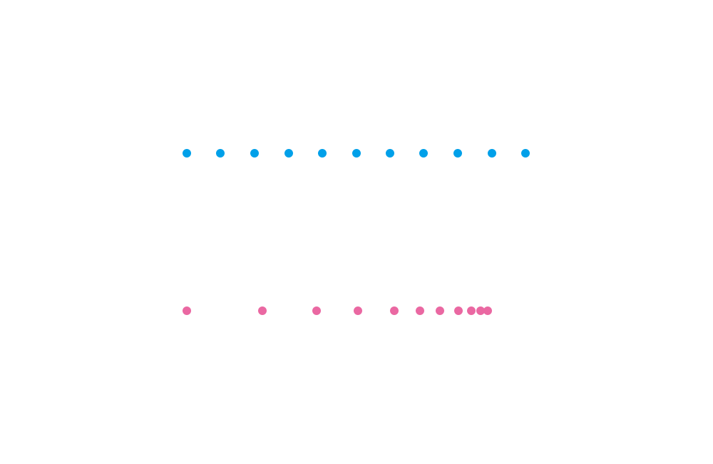 一條線也并不拘泥于就是平直的線條形式,只要能連綴成串的,我們都可以把它看成一條線,它就能在構(gòu)成中發(fā)揮起線的作用。藍(lán)色的圓點(diǎn)均勻分布,組成一條非常平靜的運(yùn)行軌跡線,紅色的圓點(diǎn)具有漸變的節(jié)奏,它們組成的線條則帶著幾分變速之感。